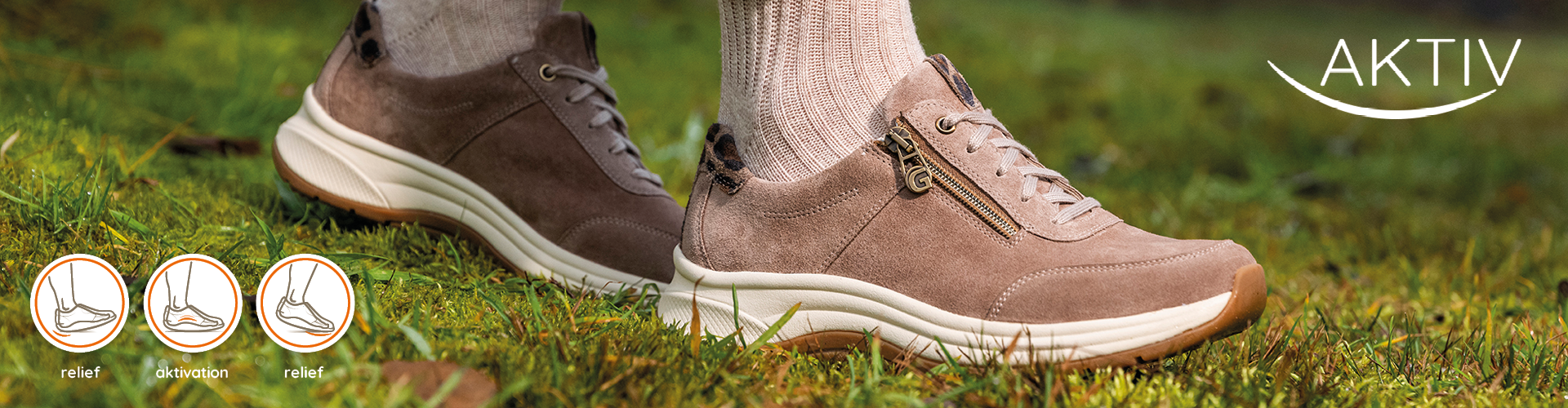 Experience a new dimension of walking with GANTER AKTIV. Our specially developed 4-point roll-through sole with pressure activation promotes dynamic, natural rolling.