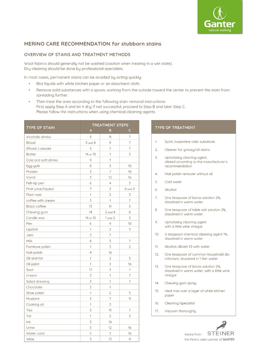 Merino wool has antibacterial properties and a strong self-cleaning effect, making it particularly easy to care for. Regular airing and brushing with a natural hairbrush are usually sufficient. Waterproofing is not usually necessary due to its natural water repellency. However, for material combinations with leather, we recommend waterproofing the shoes. For stubborn stains, you can find specialized cleaners at shoe specialty stores.